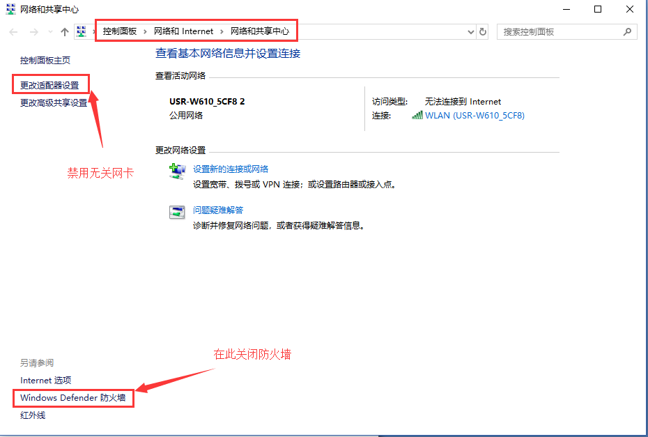 注意:在开始测试之前,一定要把电脑上的防火墙关闭,退出杀毒软件;在适配器设置中禁用本地网卡、VPN、虚拟机以及其他的网络设备。