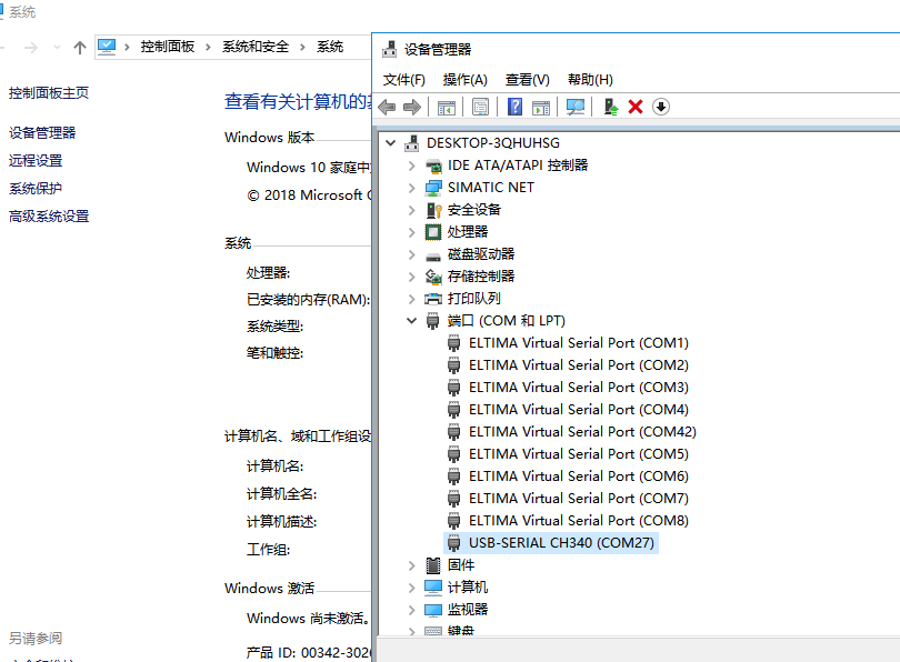 4> 用USB转485,或者是USB转232把设备的串口接到电脑上,查看W630在电脑上对应的COM号,在设备管理器中可以查看,这里是COM27