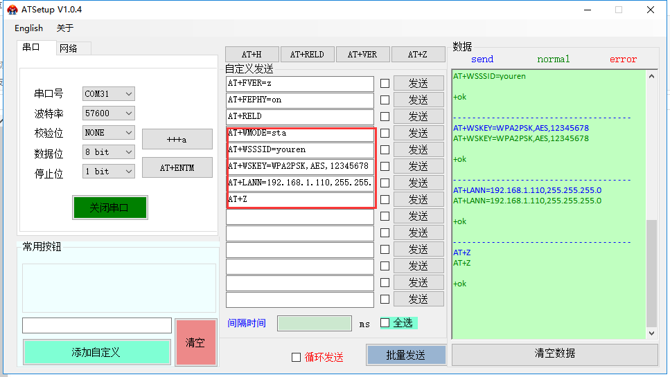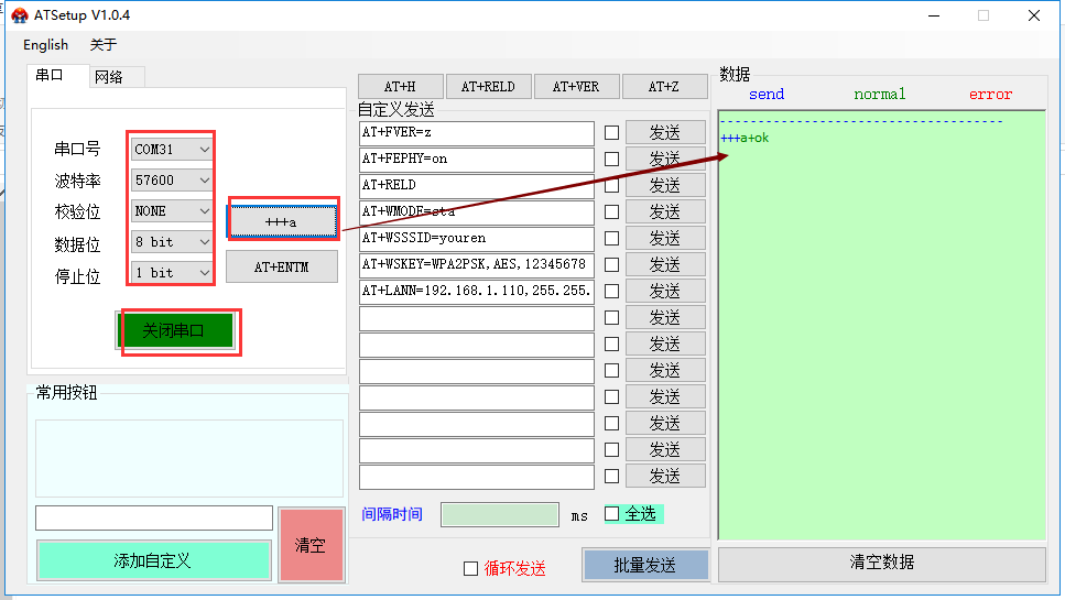 1、用usb转232串口线把w610接到电脑的串口上,选择正确的串口参数,发送+++a,进入配置状态