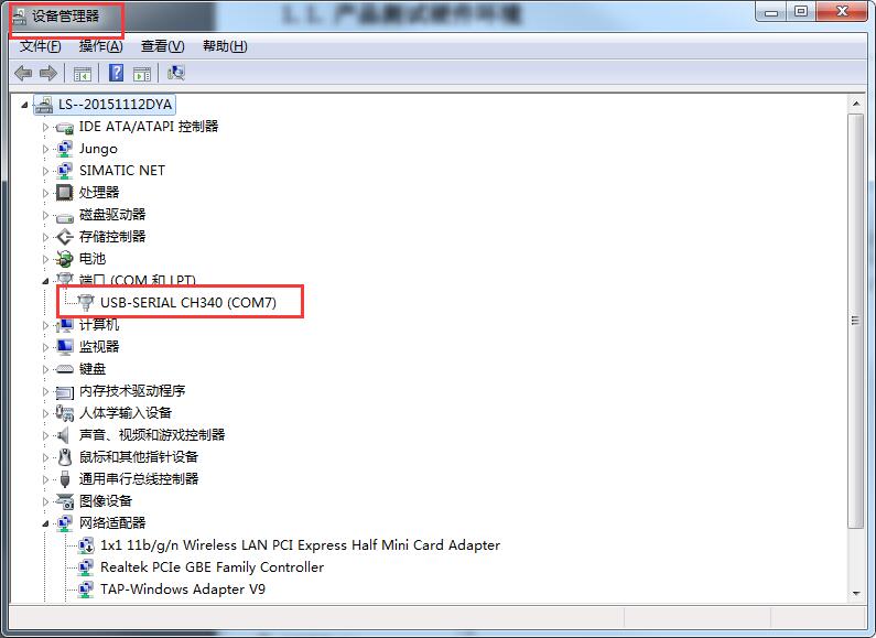 其中串口号可以在电脑的“设备管理器”中查看,见下图;