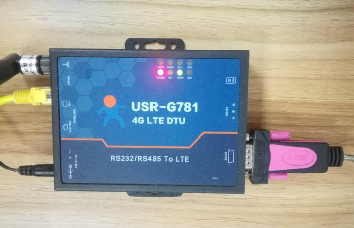 (1) 硬件连接: G781的串口通过UAB转RS232/485接到PC上,LAN口通过网线链接到电脑的网口上,用我司提供的适配器供电。