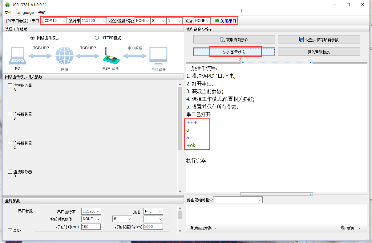 (8)数据通信。打开G781设置软件或者打开对应的串口调试助手,如下所示,可以实现双向数据通信,即表示OK