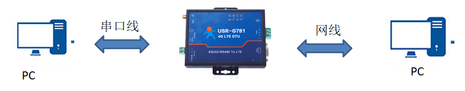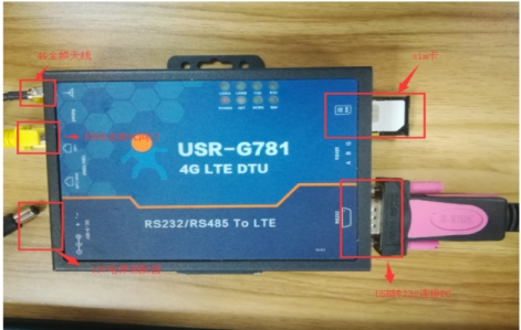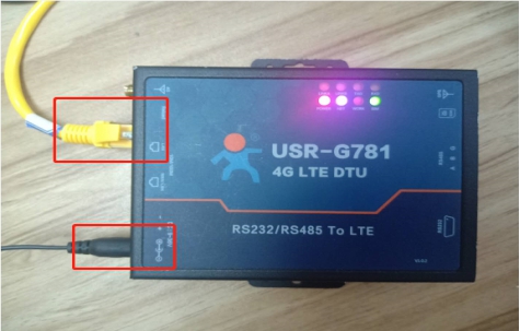(1) 硬件连接: G781的串口通过UAB转RS232/485接到PC上,LAN口通过网线链接到电脑的网口上,用我司提供的适配器供电。
