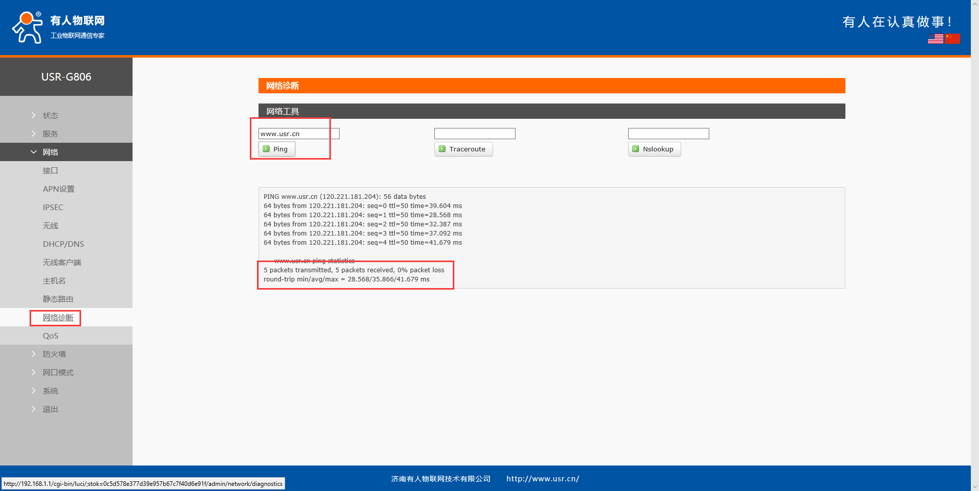打开网络------网络诊断界面,ping网检测一下,如下所示,网络正常