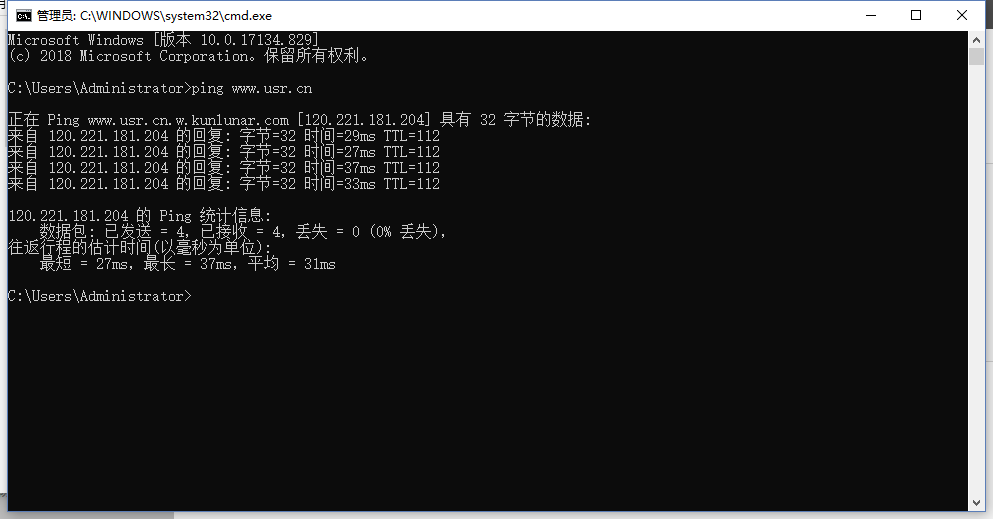 PC上打开命令行,ping外网检测OK,证明PC通过路由器联网OK