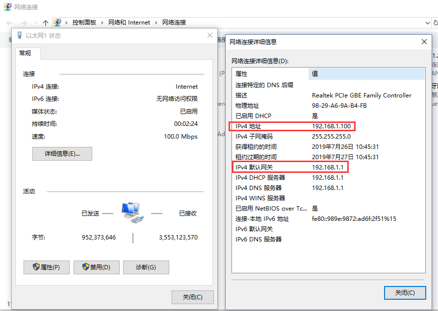 1、 通过WiFi或者有线LAN口链接G805,电脑网卡获取到IP和网关