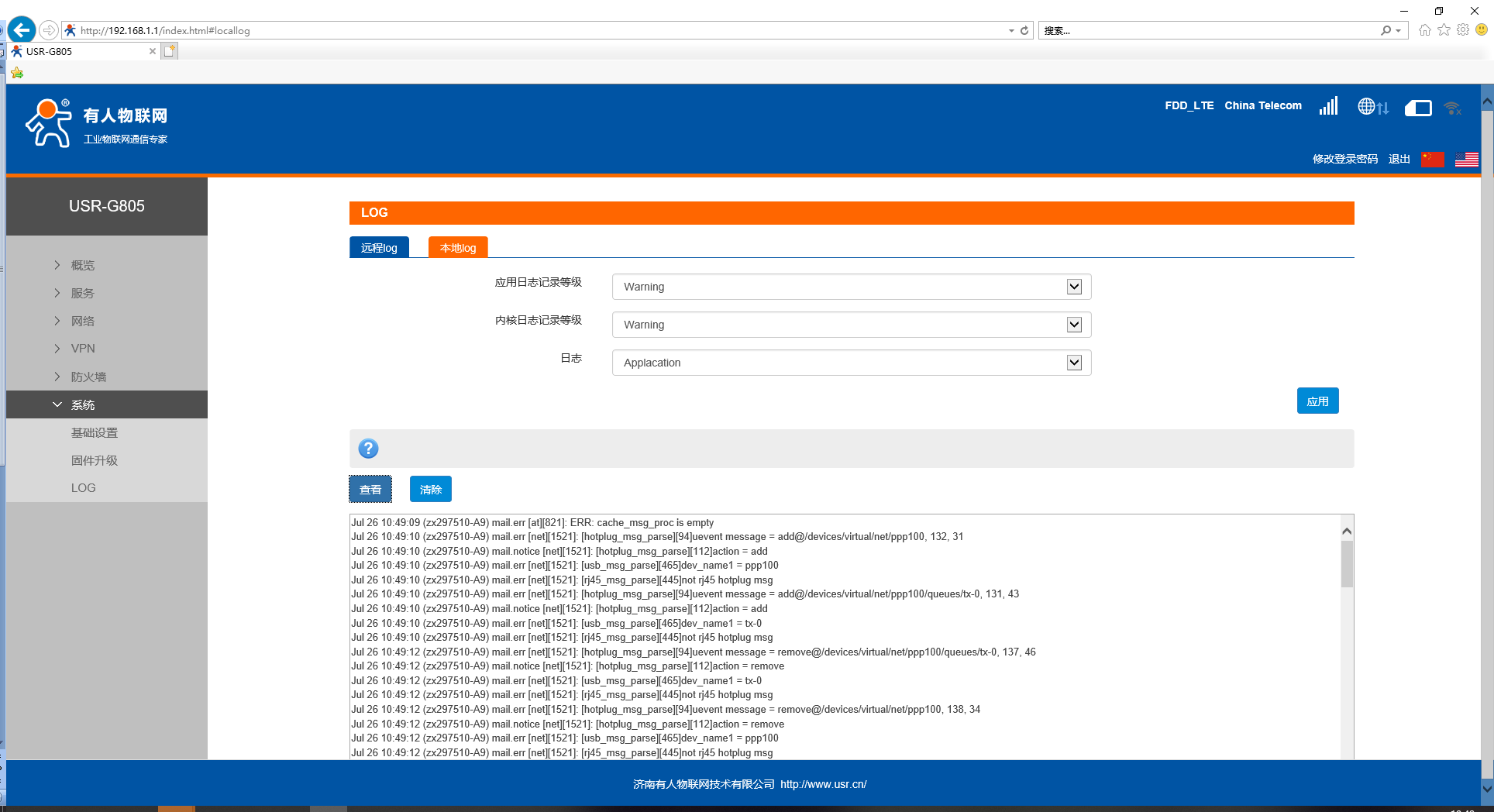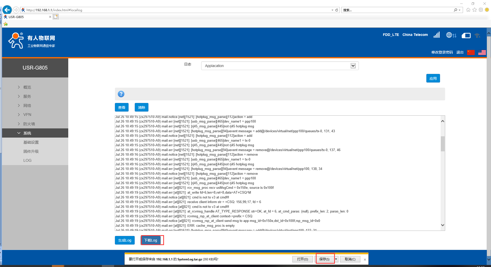 USR-G805 本地日志下载导出