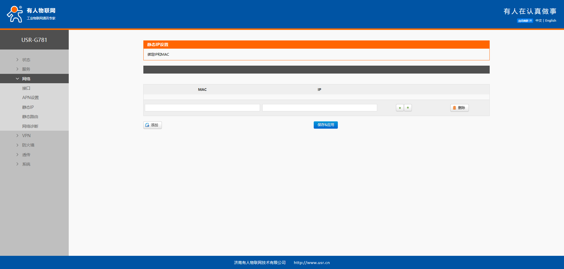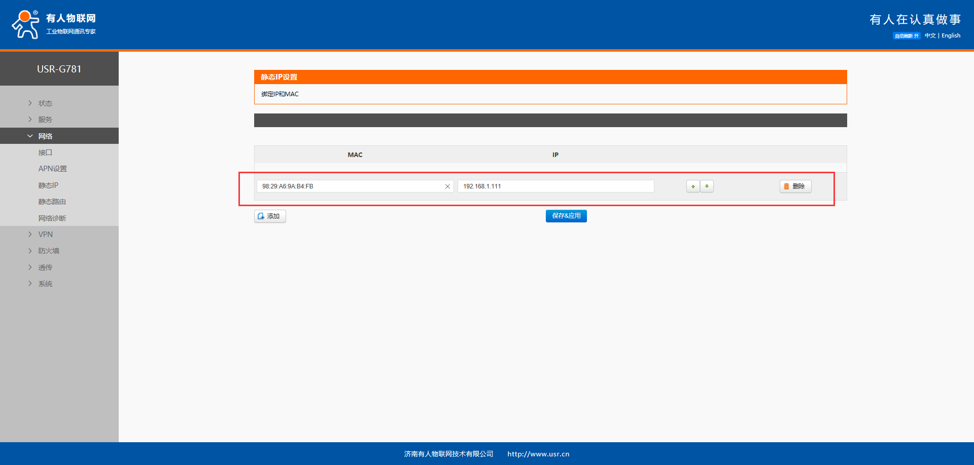 USR-G781 静态IP绑定