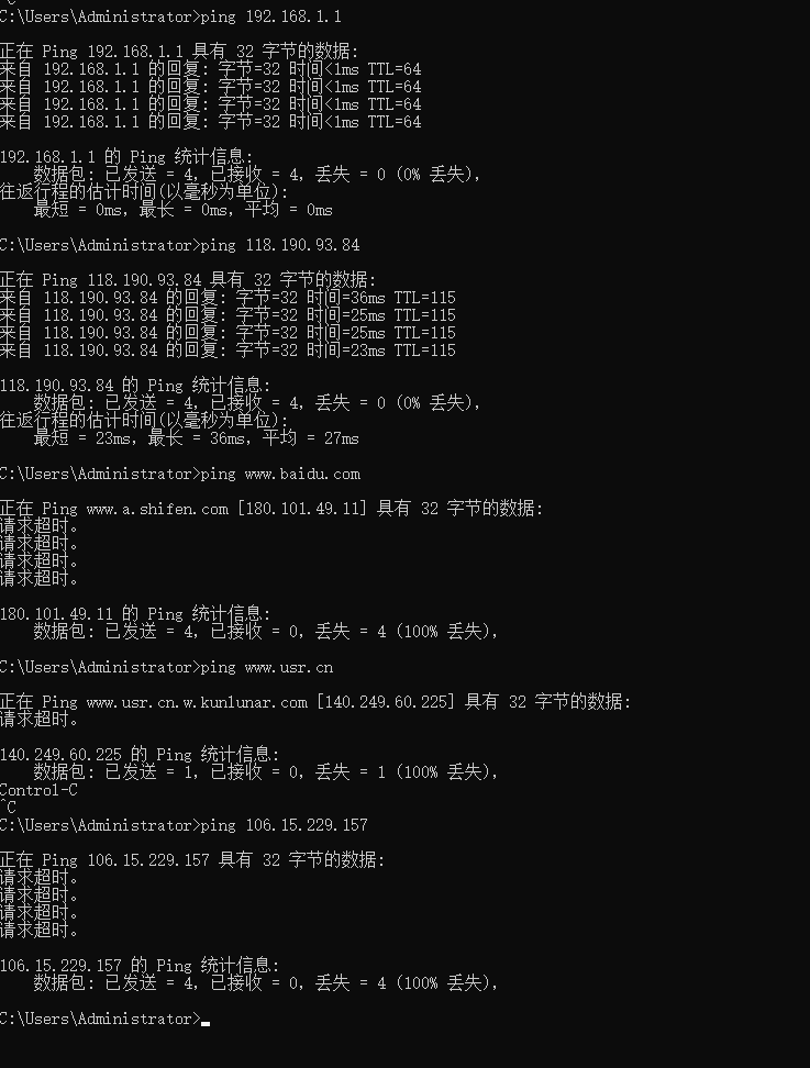 除了规则允许的192.168.1.1和118.190.93.84以外,无法ping通