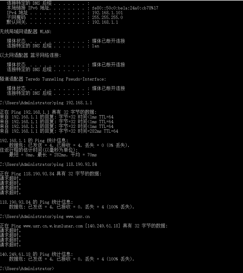 用其他PC或者网口设备链接G805,除了网关地址以外,所有地址都无法访问
