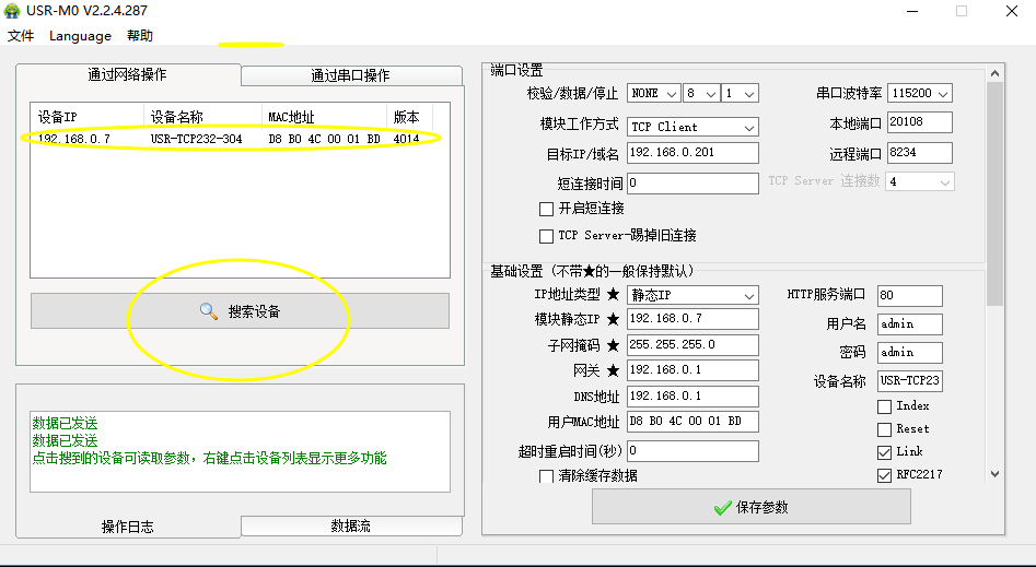 USR-TCP232-304、标准的适配器电源、、相应的固件版本(可以联系技术进行提供)、USR-M0_V2.2.1.272设置软件(要再官网下载最新版的呦)