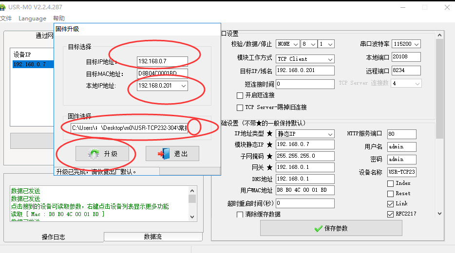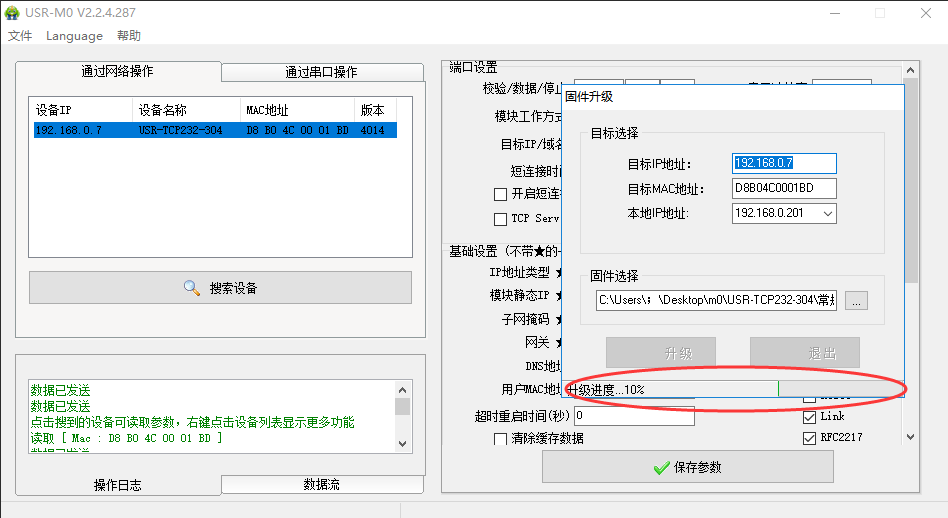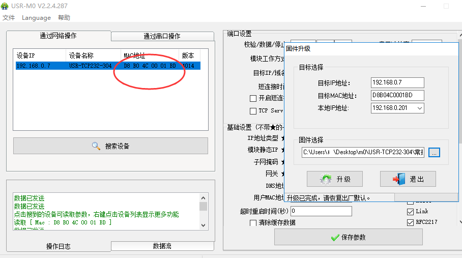 2. 目标mac地址是模块的mac地址(一定升级时对好)