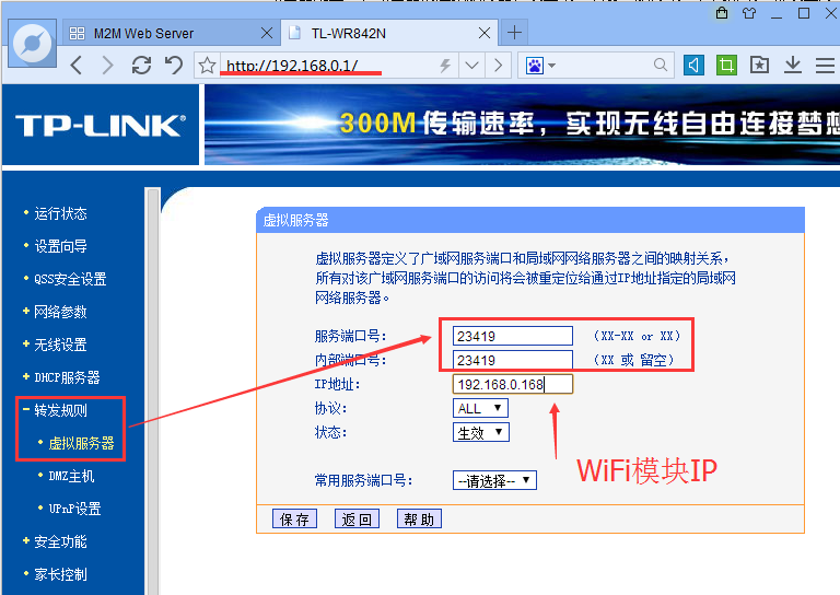 6:路由器配置:在路由器的虚拟服务器,设置端口映射。服务端口和内部端口都设置为23419