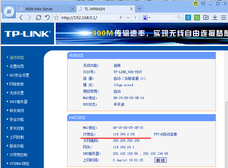 查看路由器的公网IP:WAN状态的IP地址。(WAN口地址必须是公网IP,用户可以在百度IP上查询一下,是不是公网IP)