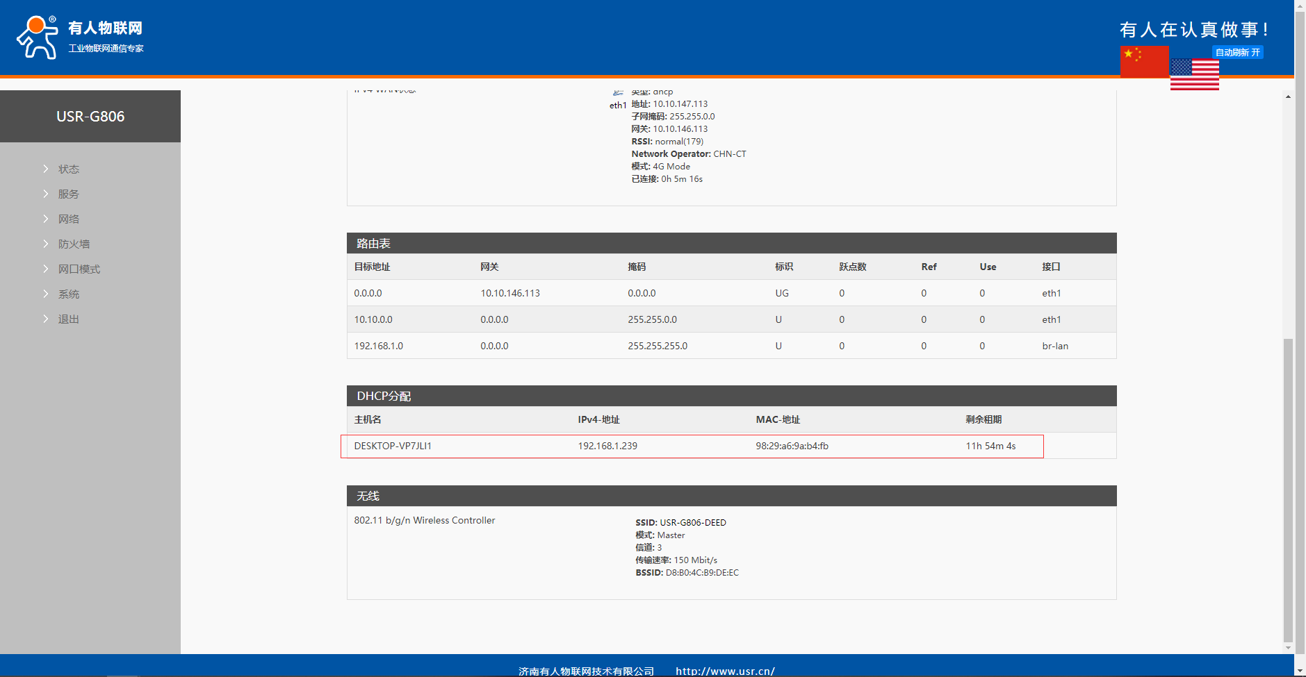 5、 上电之后,观察指示灯:PWR常亮、LAN 闪烁、4G 灯(3G+2G 灯)点亮、信号灯全亮代表信号良好