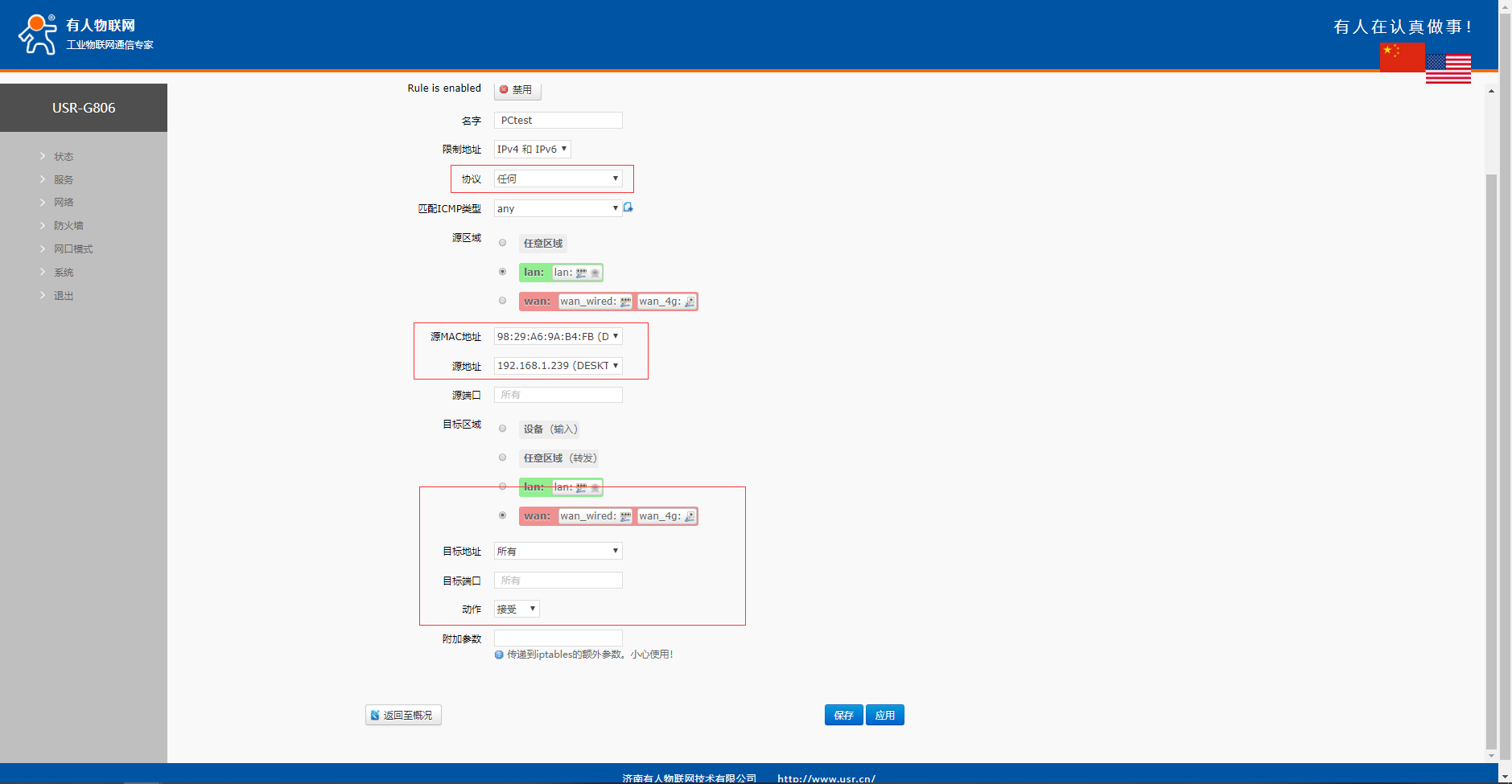 源MAC和源地址选择已连入的PC的MAC和IP;