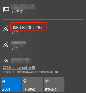 (1)使用集中器配套的电源适配器给集中器供电,集中器上电启动完成后用PC或手机可以搜索到集中器的WIFI热点,默认的SSID为USR-LG220-L-xxxx,xxxx为集中器MAC地址的后四位。