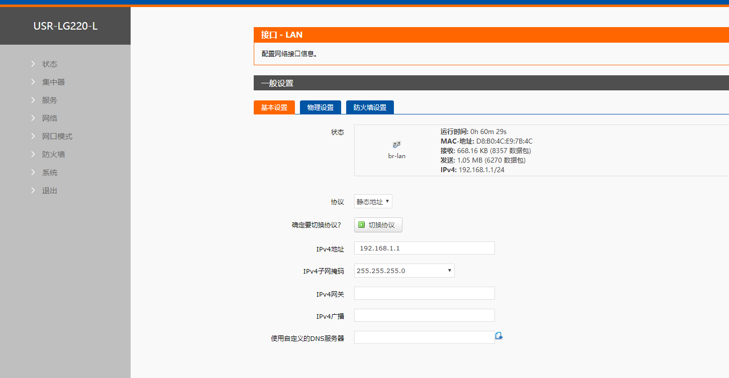 2、进入集中器网页192.168.1.1,用户名和密码都是root