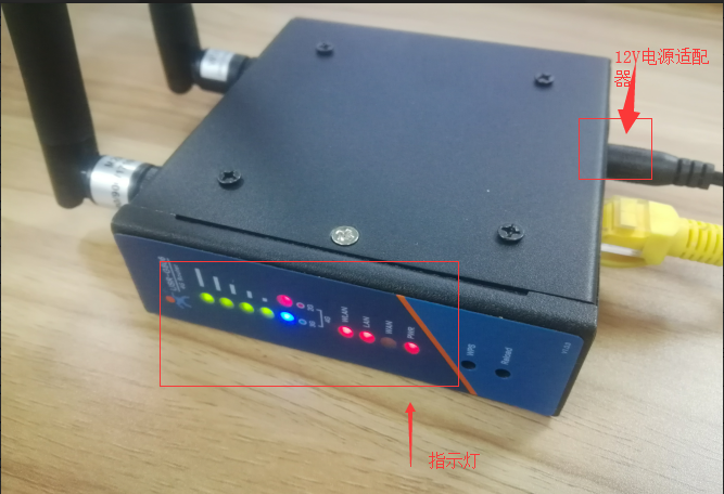 5、 上电之后,观察指示灯:PWR常亮、LAN 闪烁、4G 灯(3G+2G 灯)点亮、信号灯全亮代表信号良好