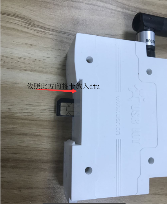 1. 硬件连接:装上sim卡,sim卡依照图1(1)的方式放入dtu当中。接上天线(4g天线),USR-DR504的串口通过USB转485接到PC上,用我司提供的适配器供电,整个连接图如图1(2)所示。