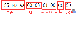 串口端输入数据:55 FD AA 00 03 61 00 CC 2D