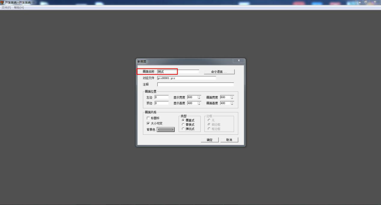 点击画面,新建一个画面。画面命名.然后双击,进入画面编辑栏