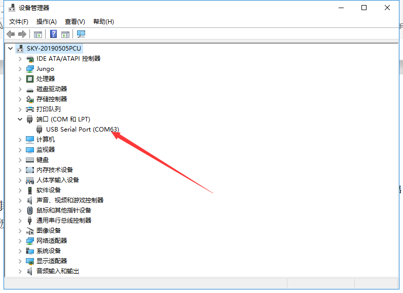 其中串口号可以在电脑的“设备管理器”中查看,见下图;