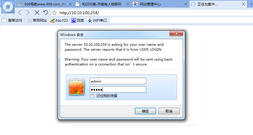 2:在浏览器输入IP10.10.100.254.用户名和密码都是admin。