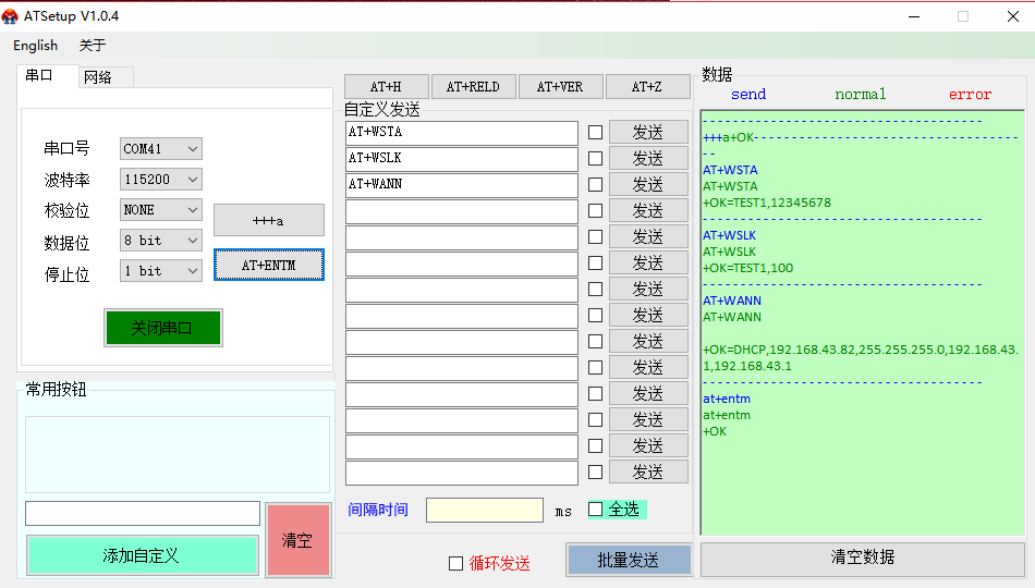 打开ATSetup软件,正确打开串口,点击“+++a”返回OK进入AT命令模式。