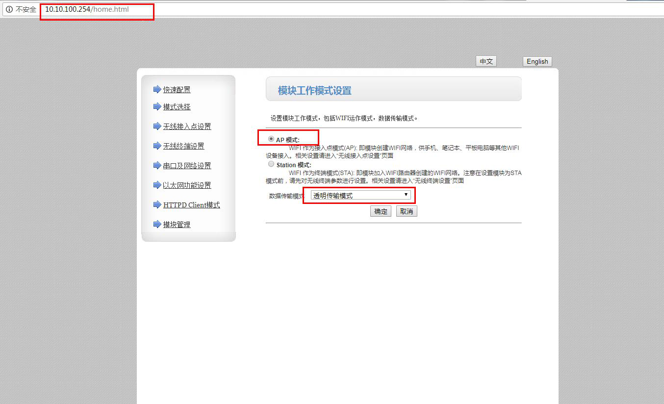 1号USR-W610设置AP模式,工作模式设置TCP server。