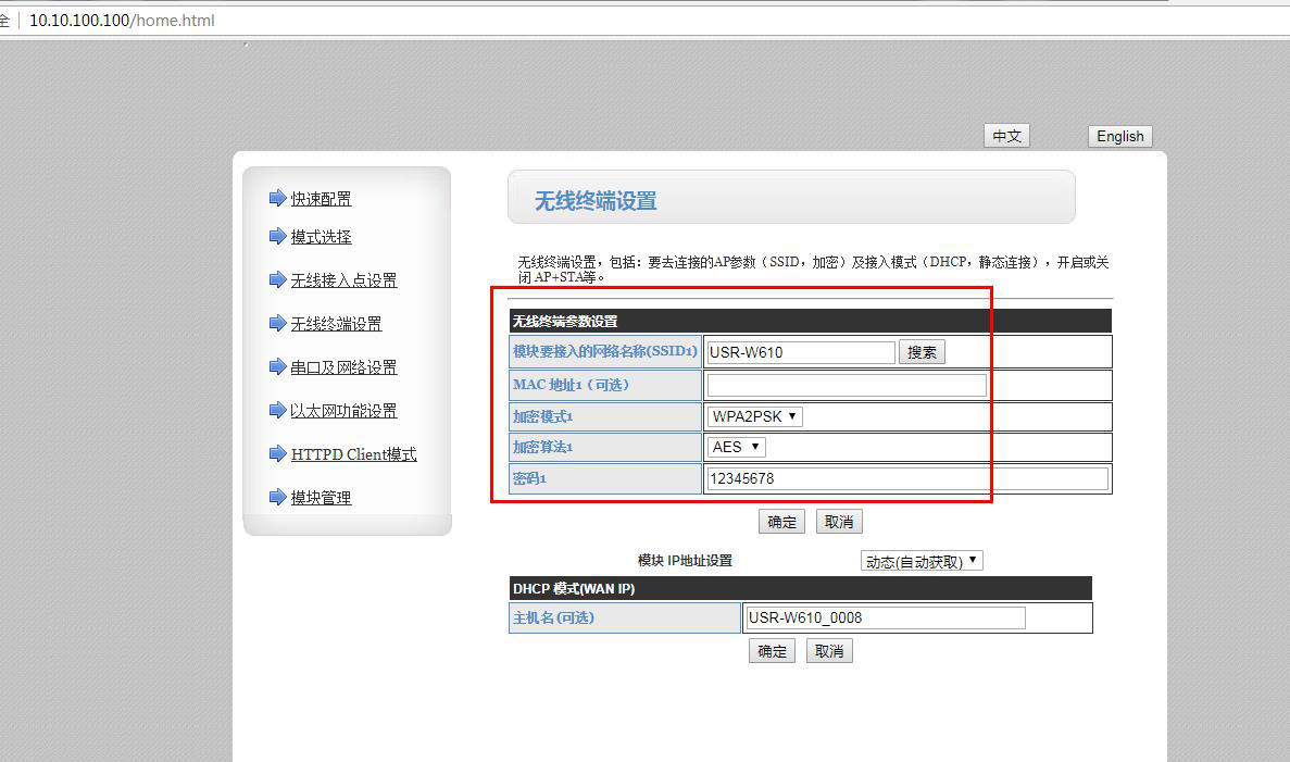 2、2号USR-W610 STA模式参数设置: