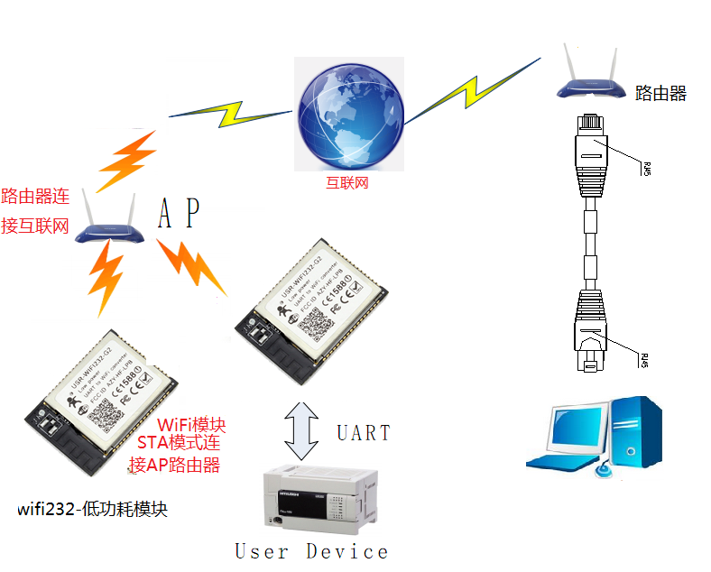 2:WiFi模块加入路由器设置请参考:http://www.usr.cn/Faq/62.html
