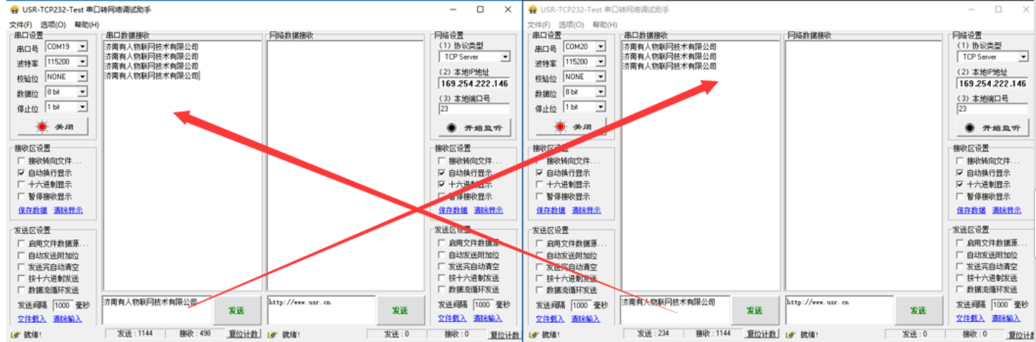 USR-TCP232-306 两台设备局域网内一对一透传基本测试
