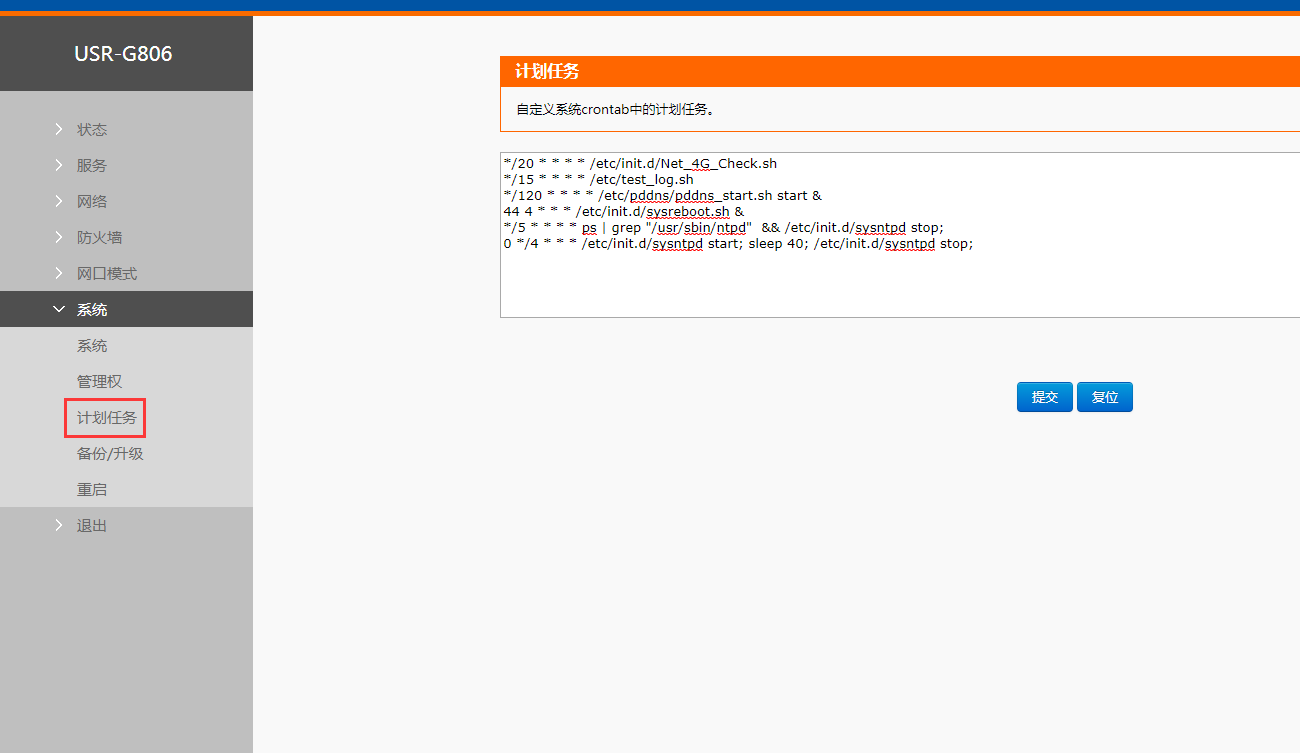 登录路由器的内置网页,在系统-->计划任务界面可以看到路由器出厂默认的几条计划任务。