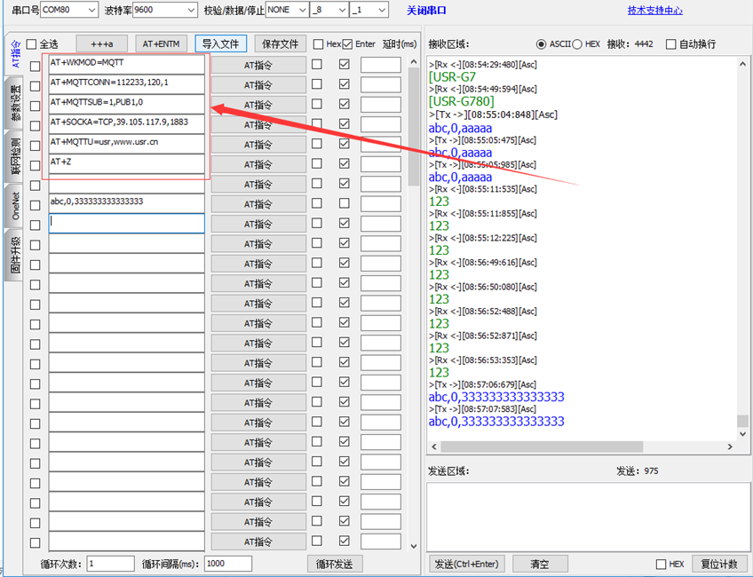 u mod:工作模式设置,这里为MQTT。