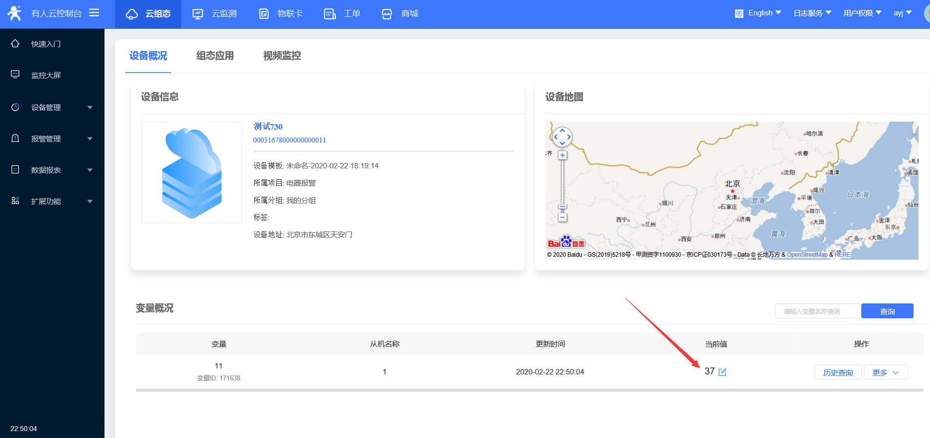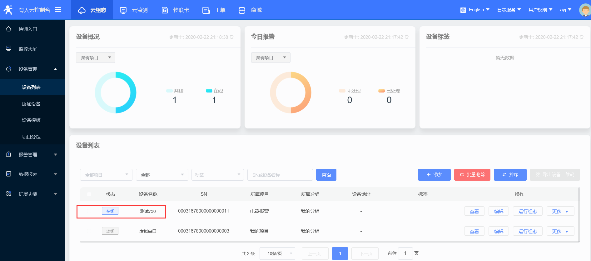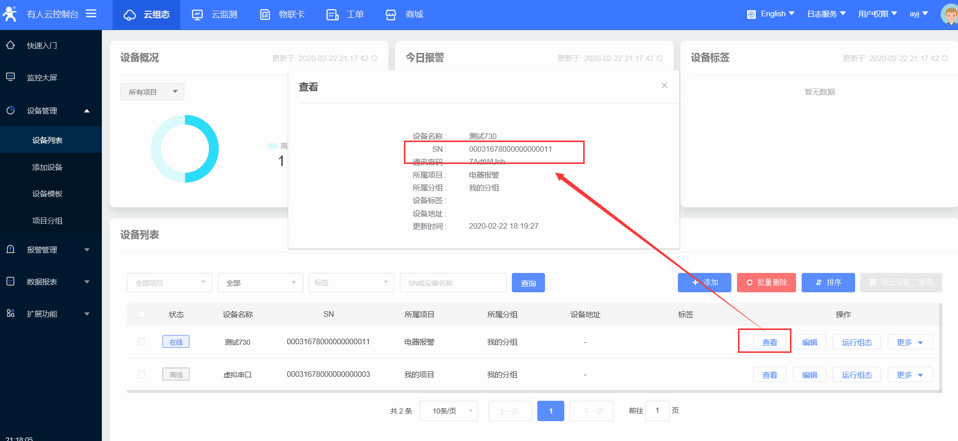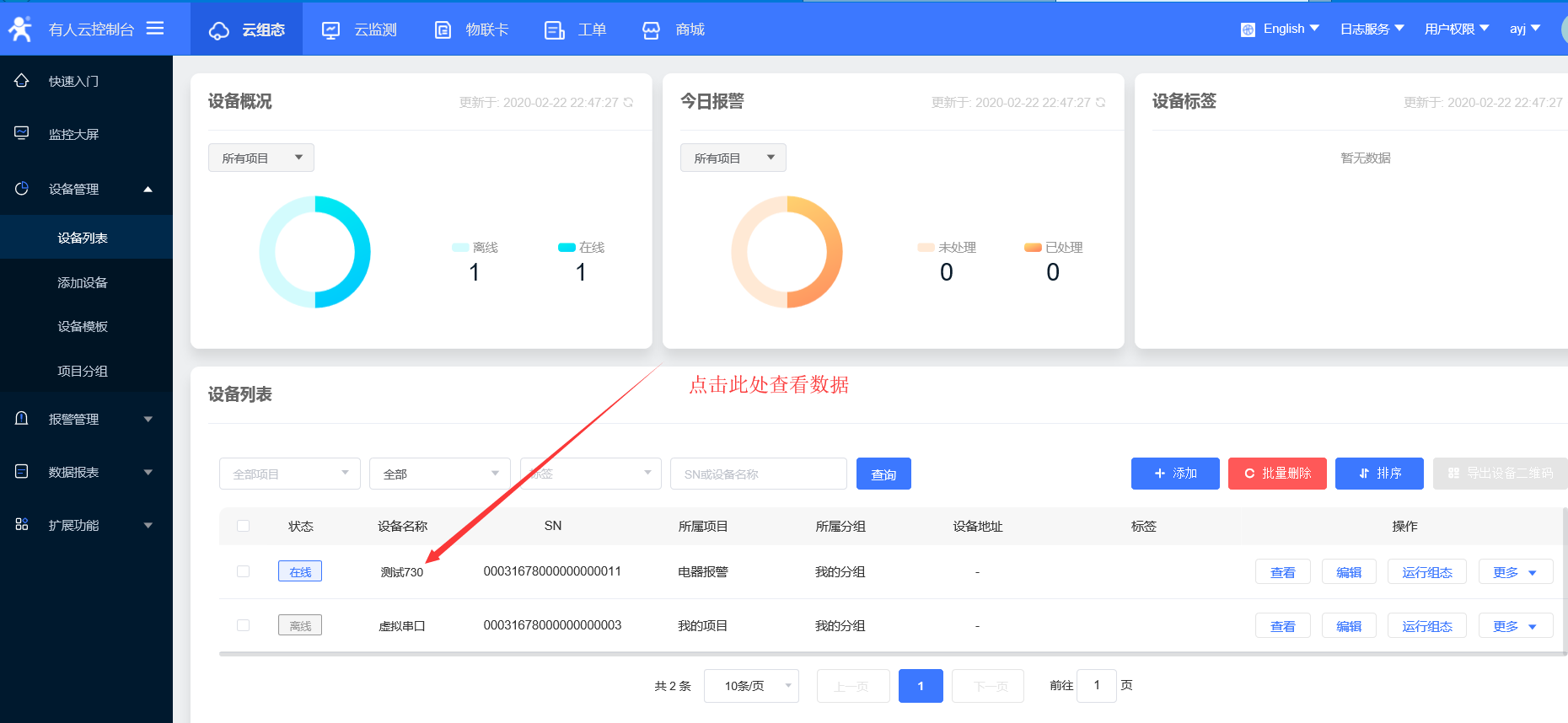 终端串口设备返回数据---->730---->有人云平台,解析并显示