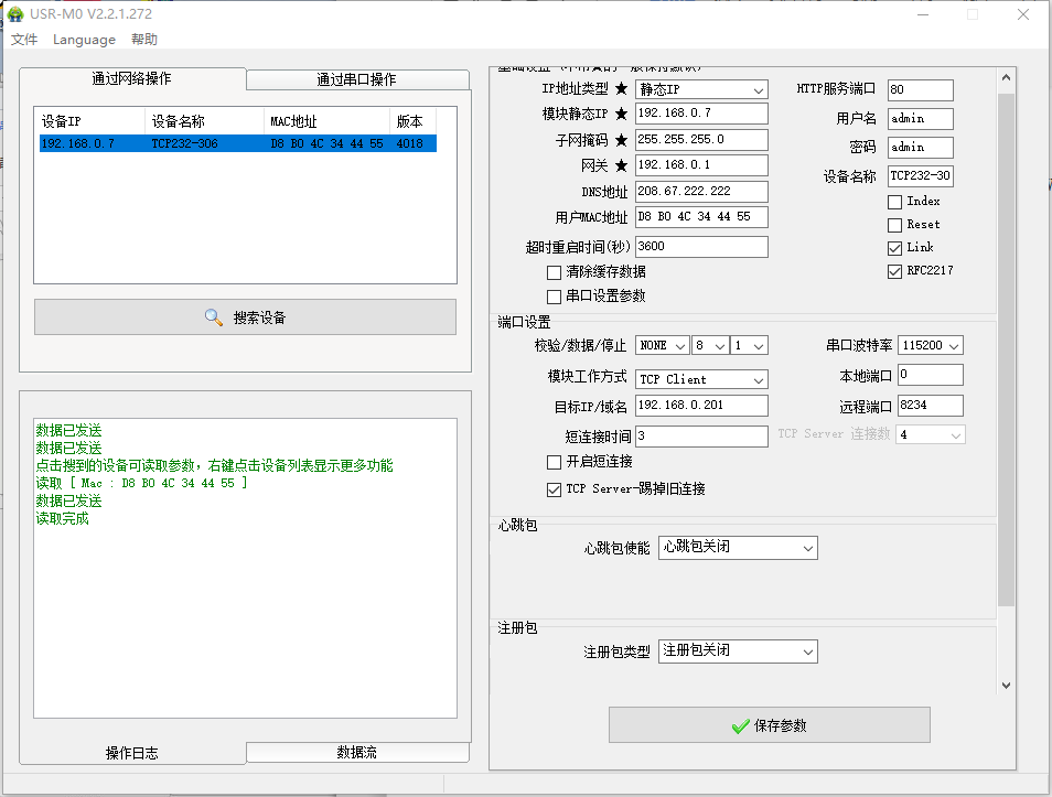M0系列设置软件:http://www.usr.cn/Download/257.html