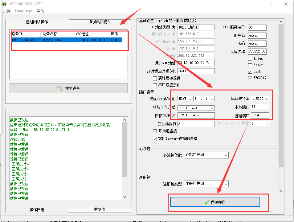 DHCP:电脑串口——Usb转485(或232)——USR-TCP232-306串口服务器——网线——路由器——电脑(和302同一网段)