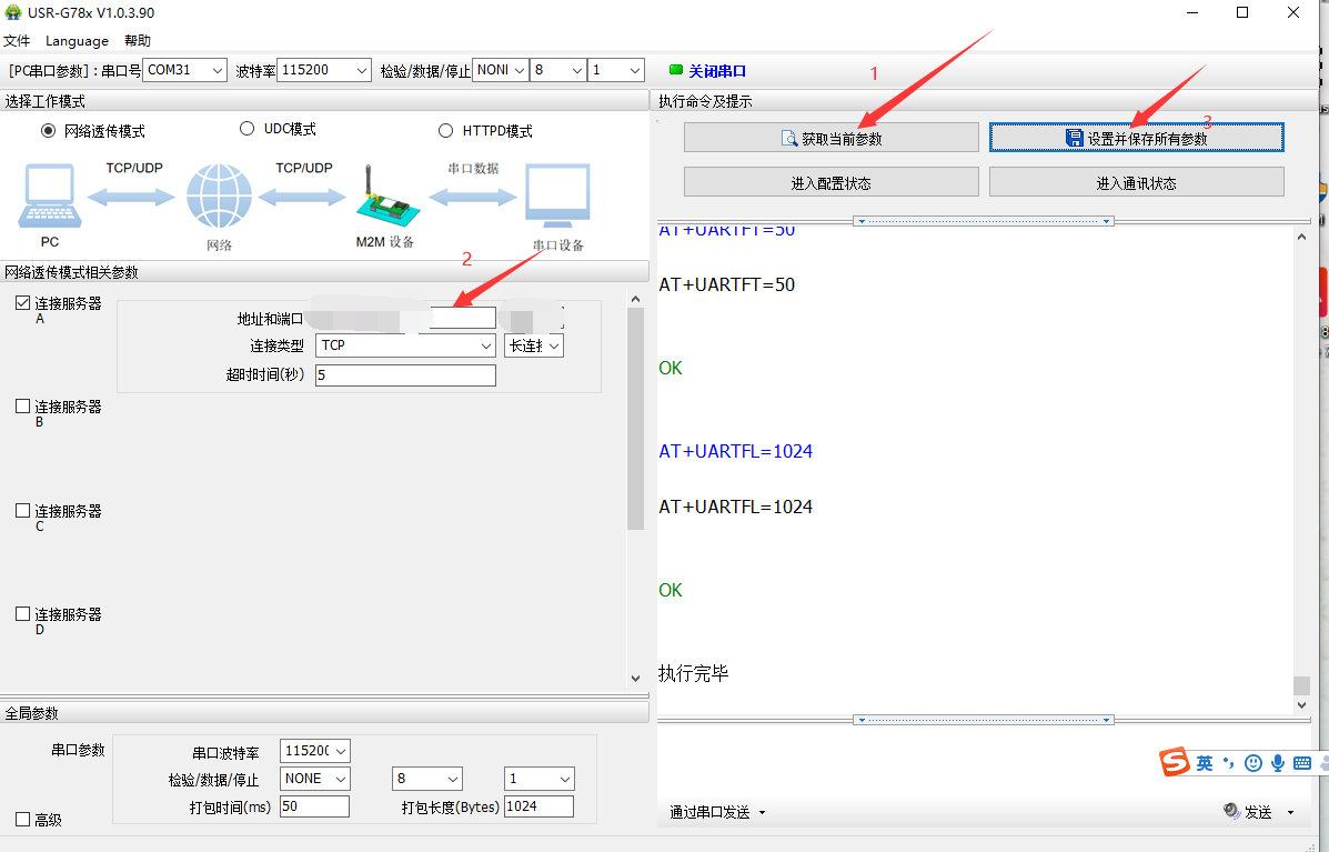 2.填写要连接的远程服务器的ip的端口号,并保存参数