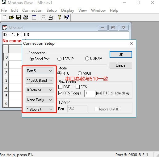 6. 打开modbus poll和modbus slave软件,分别设置参数