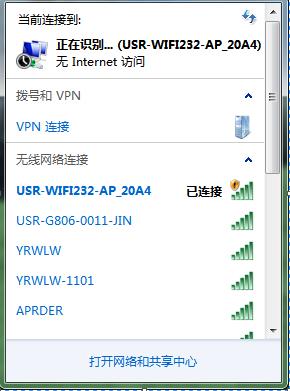 2、USR-W610默认是AP模式,电脑连接USR-W610的wifi。