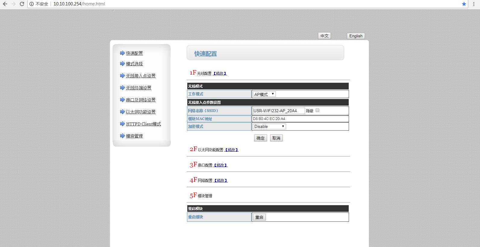 备注:内置网页设置参数,必须点击确定保存,重启生效,建议所有网页参数设置完毕之后,最后再重启USR-W610。