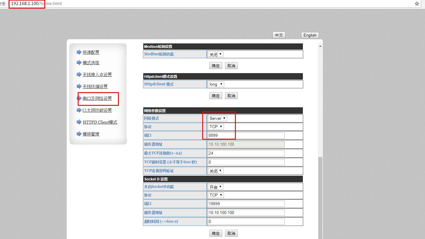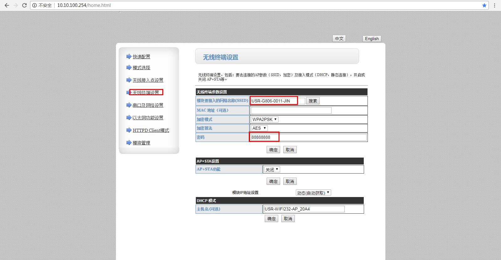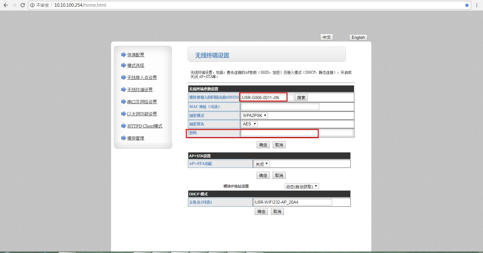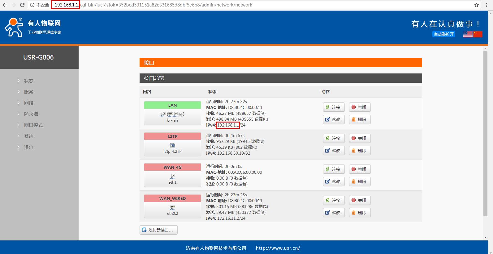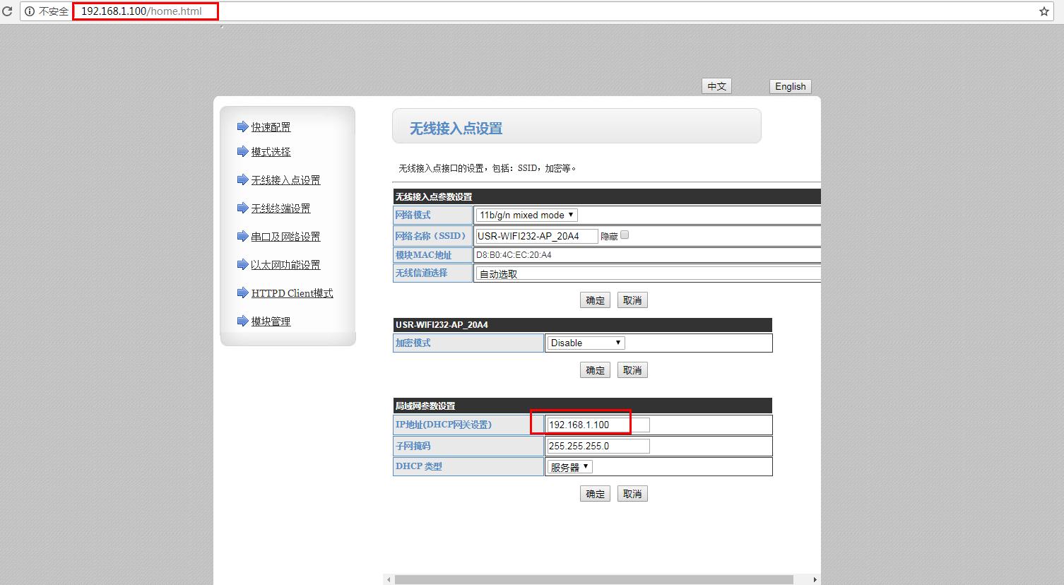 1、电脑连接路由器的wifi,电脑浏览器使用设置的IP 192.168.1.100,登录USR-W610的内置网页。