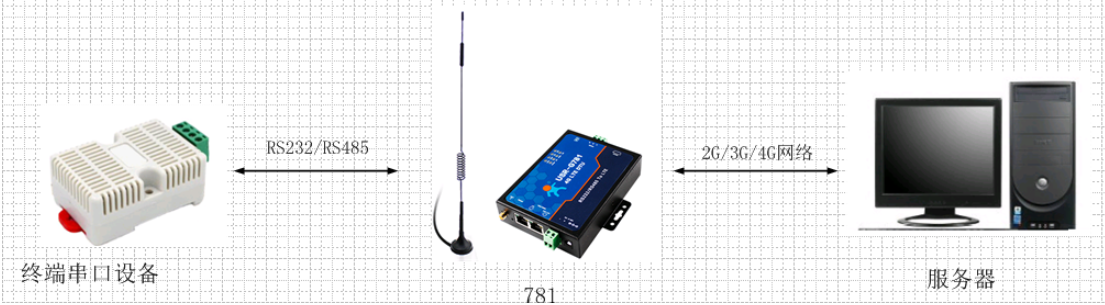 数据流向: 终端串口设备发送数据--->781--->服务器