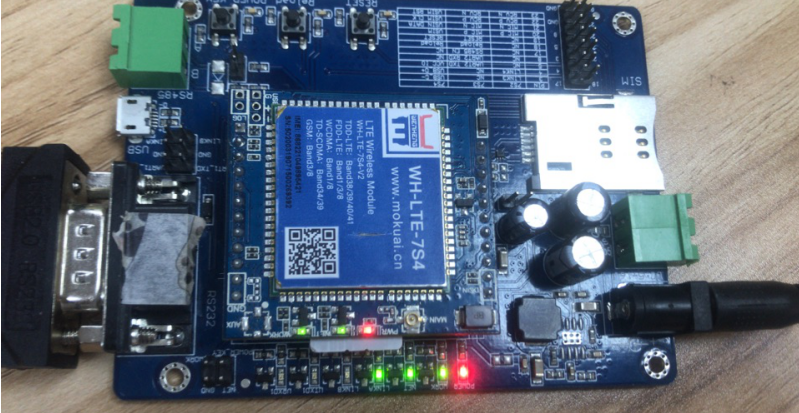2. 将4G模块USR-LTE-7S4模块插入评估板,插入sim卡,串口连接电脑