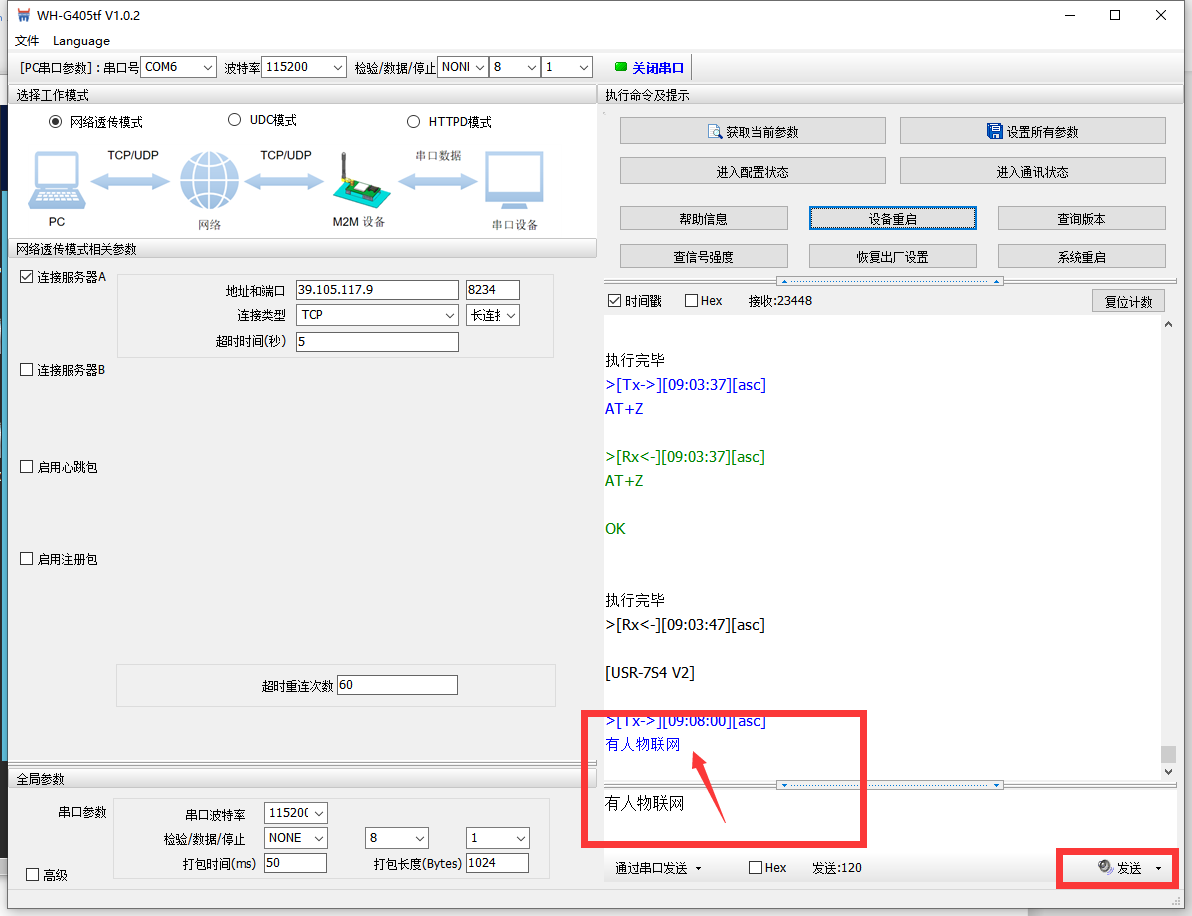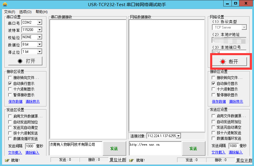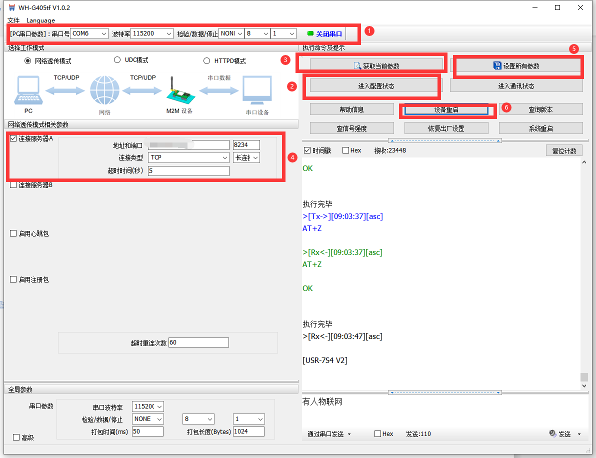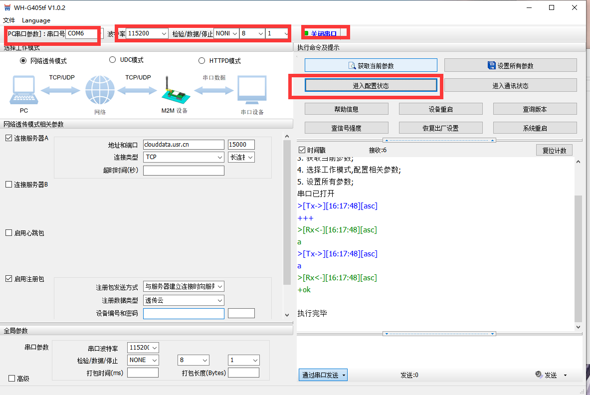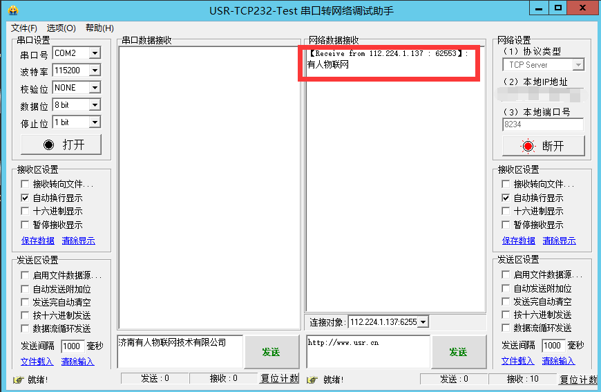 基本测试通讯案例:http://www.usr.cn/Faq/258.html