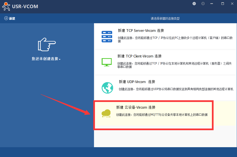 1、打开下载好的软件,点击 新建云设备