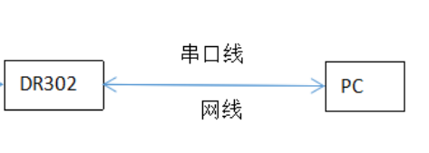 1、将302(USR-DR302,简称 302)的串口通过串口线(或USB 转串口线)与PC相连接,通过网线将 302 的网口 PC 的网口相连接,检测硬件连接无错误后,接入我们配送的电源适配器,给 302 供电。