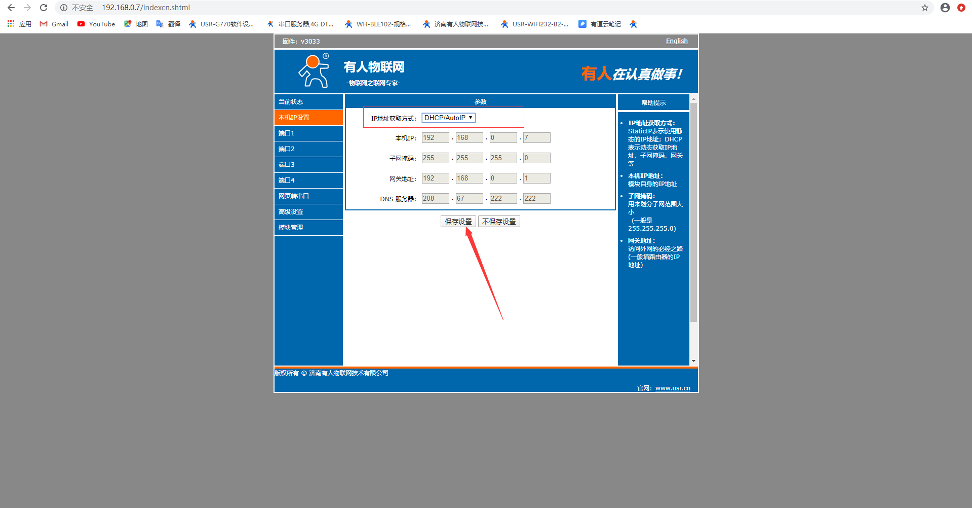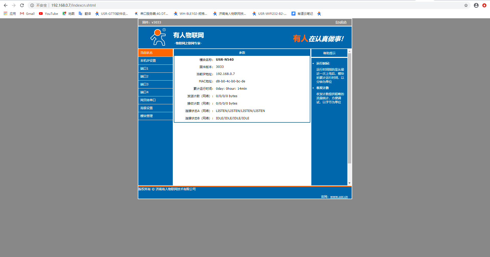 3.浏览器输入IP192.168.0.7进入N540的内置网页
