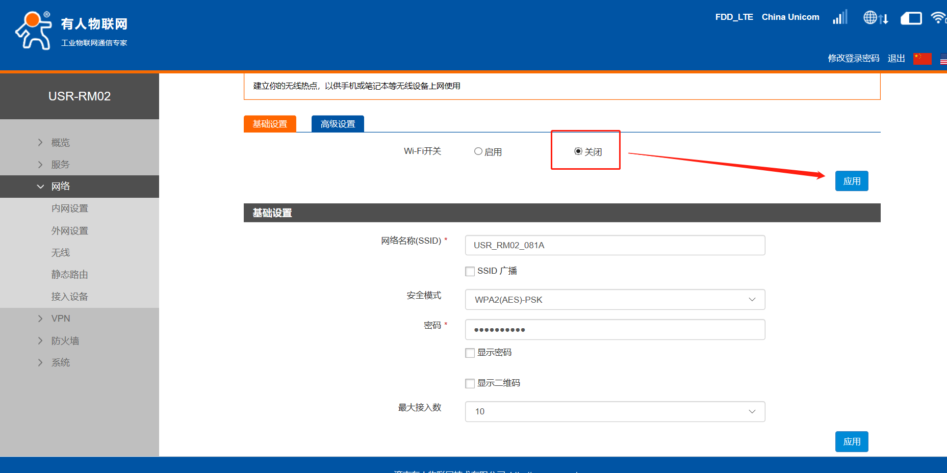 USR-RM02 关闭WiFi或修改WiFi参数